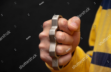 우선 너클이란 아래와 같이 네개의 손가락 사이로 저러한 쇠뭉치의 형태의 구조물을 끼어서 사용하는 호신용품입니다.
